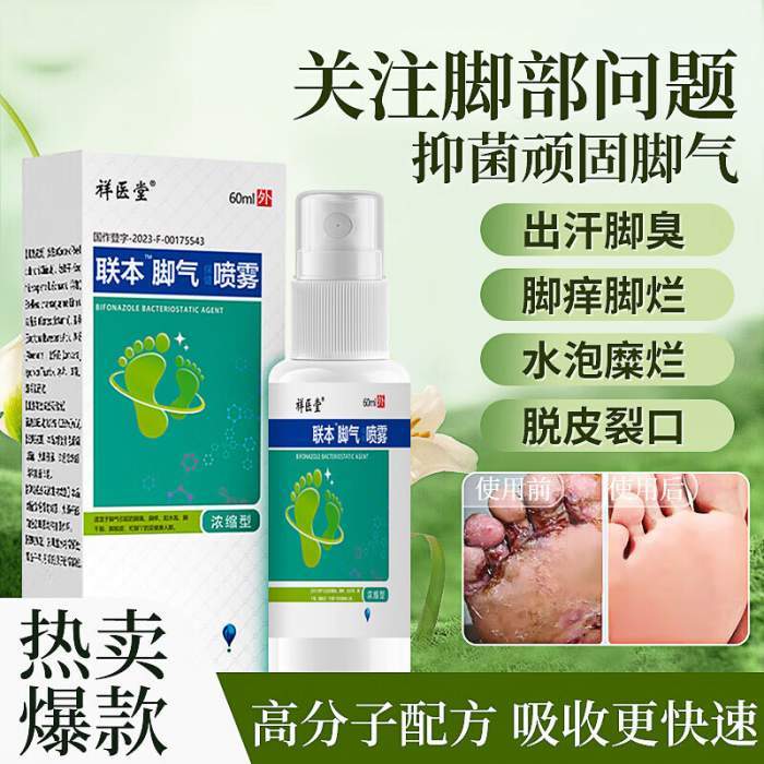 满49减33,到手价16.9元,祥医堂联本脚气喷雾脚痒脚汗脚臭喷雾脱皮烂脚丫水泡型专用脚气喷剂60ml*2瓶