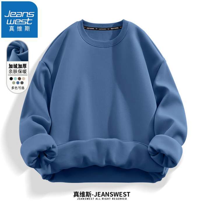 真维斯(JEANSWEST)外套男春秋学生卫衣圆领学生长袖日常纯色宽松百搭上衣 牛仔蓝 5XL