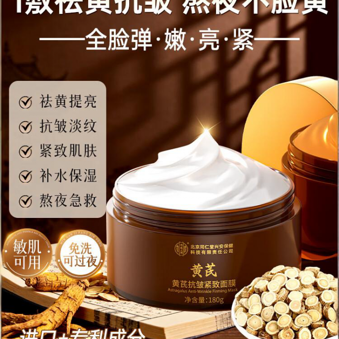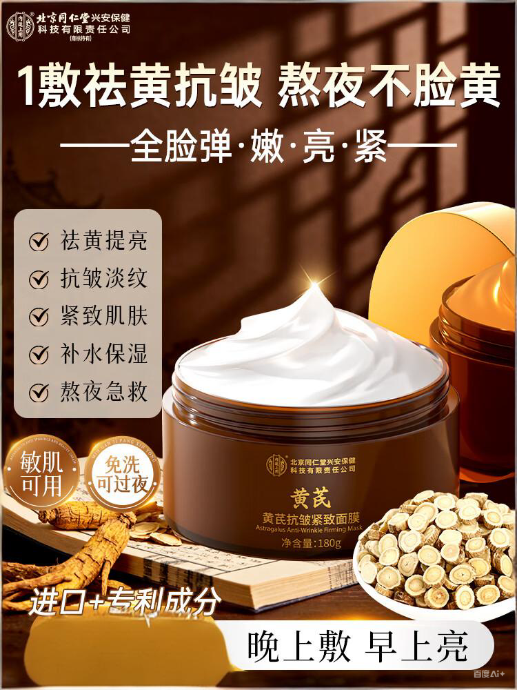 祛黄抗皱 熬夜不脸黄 晚上敷早上亮 彻夜呵护 一觉全脸紧致嫩滑