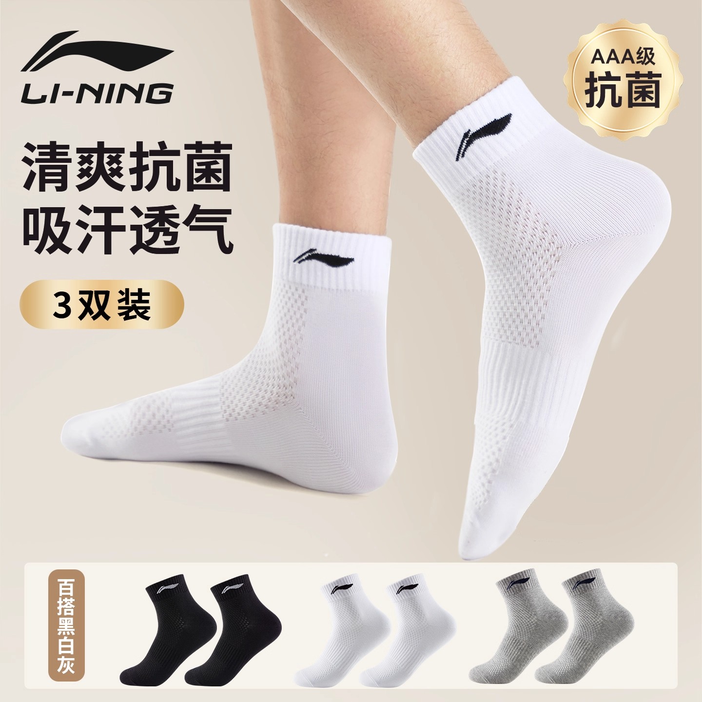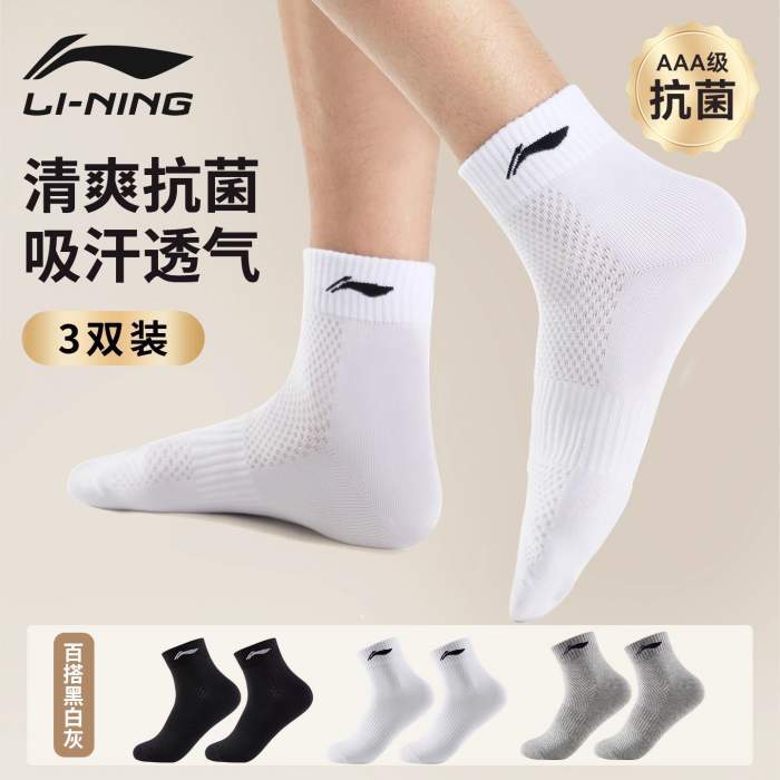 李宁运动中筒袜!保真! 线下一双就要25元起!咱们3双19.9,白菜价直接撸!