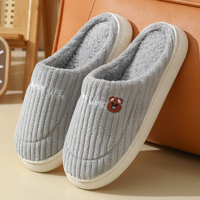 福虹辰冬季新款加绒毛毛厚底棉拖鞋女室内防滑家居情侣棉拖鞋男