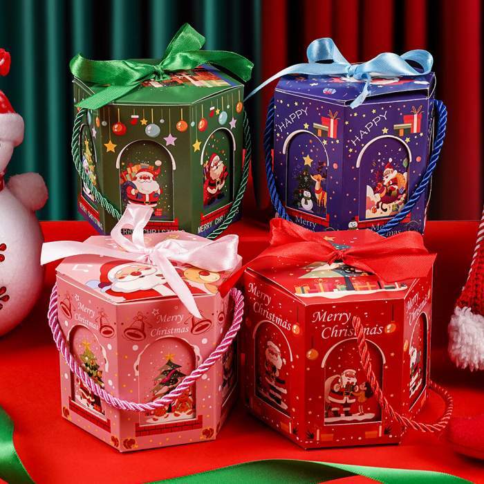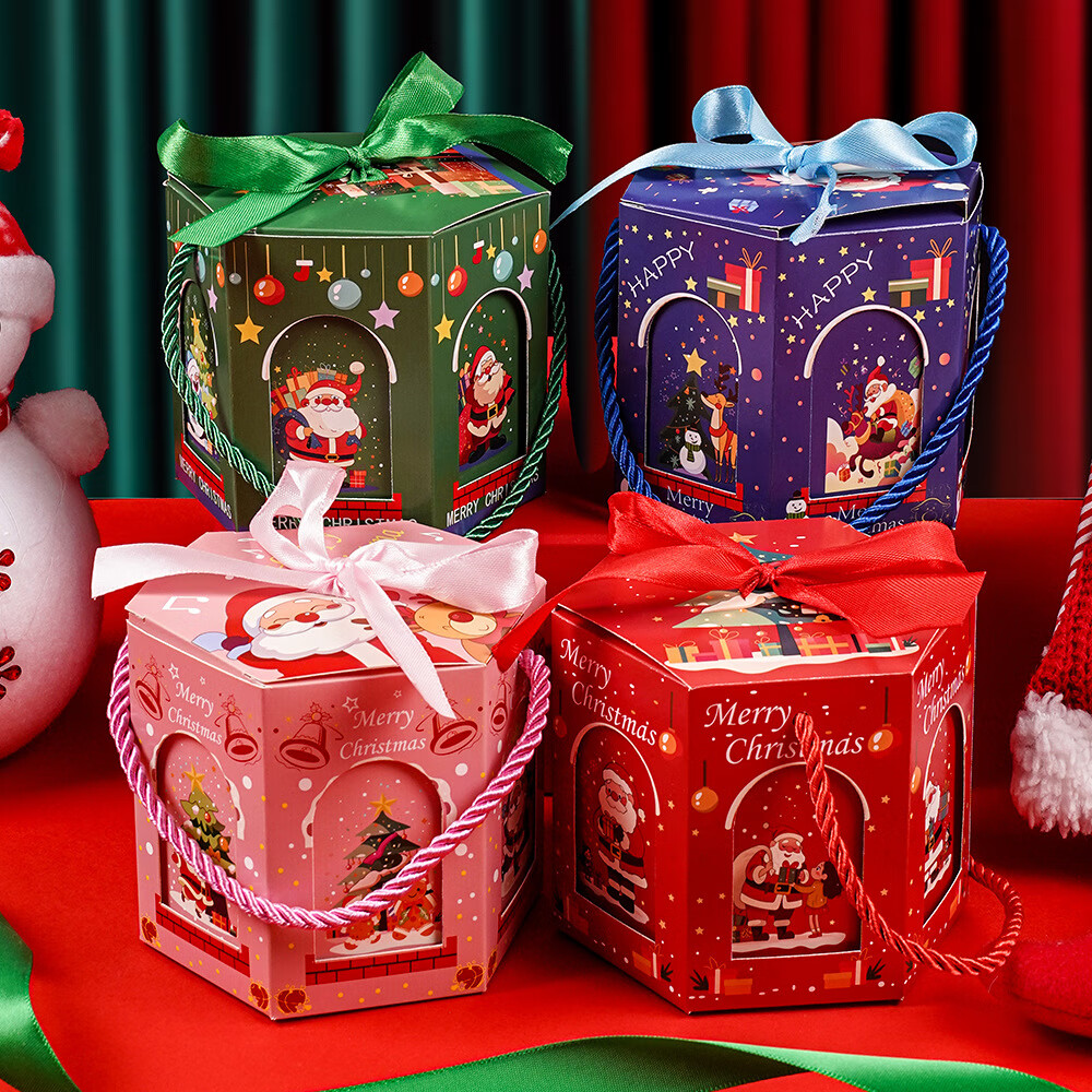 新款圣诞苹果盒平安夜苹果礼盒圣诞节包装盒儿童糖果礼品袋礼物盒 镂空款40个混发