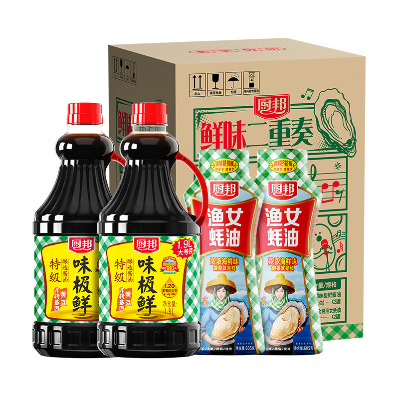 > 【聚划算】厨邦味极鲜酱油1.9L*2+金装渔女蚝油605g*2特级生抽炒菜点蘸调味【聚划算】厨邦味极鲜酱油1.9L*2+金装渔女蚝油605g*2特级生抽炒菜点蘸调味