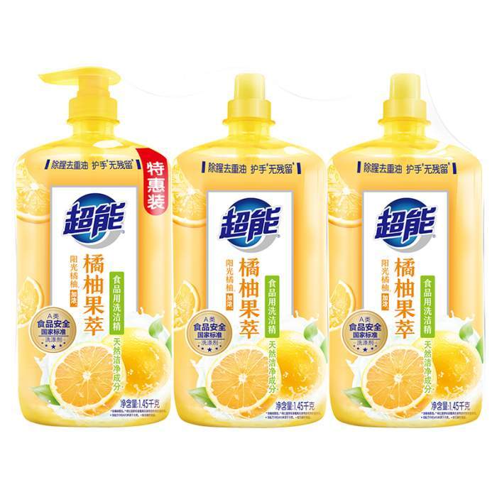超能大牌离子去油洗洁精!温和不伤手,强效去油不残留,带来清新气味,洗餐具,蔬果等都放心!