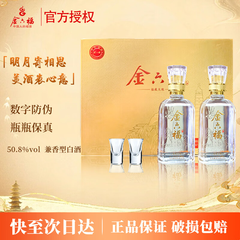 金六福白酒礼盒 兼香型白酒 婚宴喜酒 送礼白酒 50.8度 500mL 2瓶 福藏天地礼盒