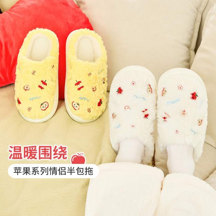 大漏速卖!早买早享受!三福棉拖鞋苹果可爱保暖室内家居防滑毛绒包头半拖鞋冬女2025新款