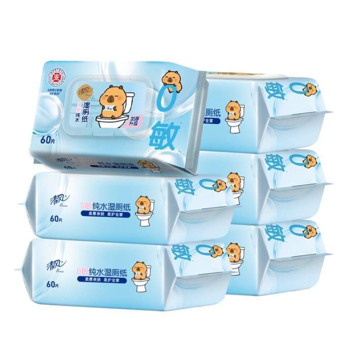 > 清风卡皮巴拉湿厕纸60片6包擦屁股厕纸私处杀菌湿厕纸巾实惠装by清风湿厕纸,能够擦去大部分的细菌,天然草本配方,滋润亲肤无刺激,添加洋甘菊芦荟精华,进口原生木浆,细腻柔韧,易溶易冲散,黄金含水量,不粘腻,无潮感,一抽一张,非常方便。