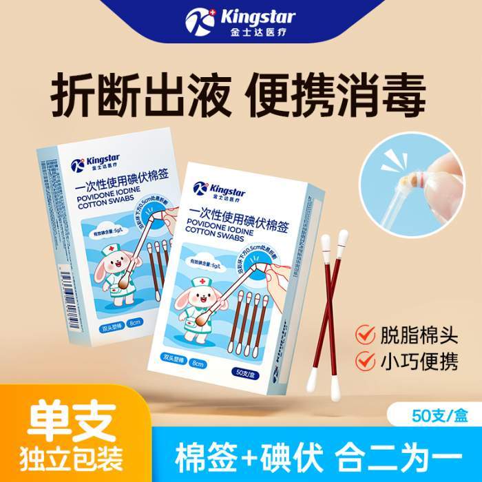 医用碘伏棉签合二为一,足量碘伏,便捷消毒,医用脱脂棉头,应急护理,便捷消毒新方式,药监注册符合国标,独立包装随时守护家人健康!!!