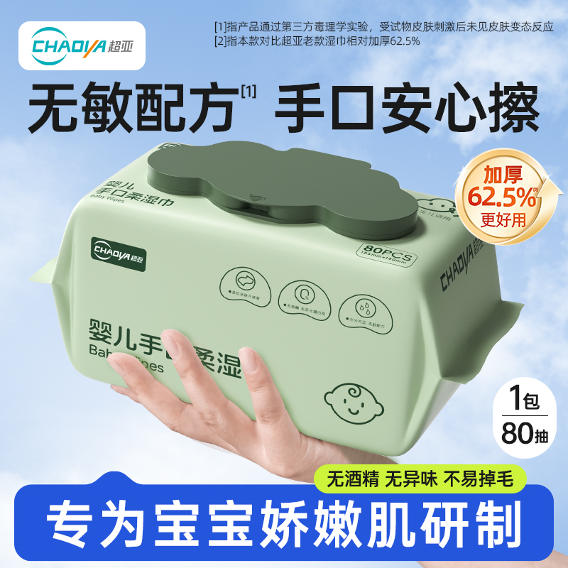 > 超亚婴儿湿巾手口屁专用新生儿宝宝婴幼家庭实惠大包装加厚装80抽超亚婴儿湿巾手口屁专用新生儿宝宝婴幼家庭实惠大包装加厚装80抽