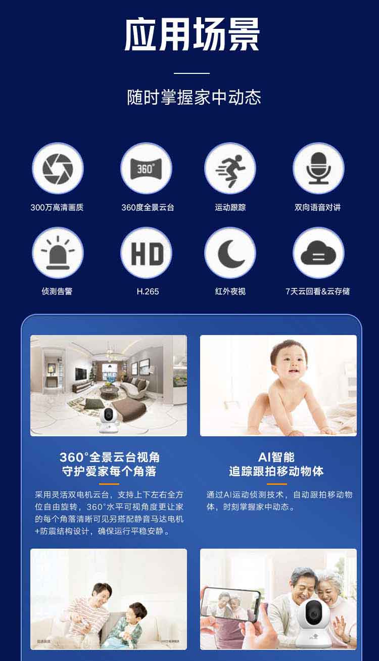 联通智能摄像头家用高清2K日夜全彩远程无线对讲监控 +7天云存储免费2年 + 包邮到家