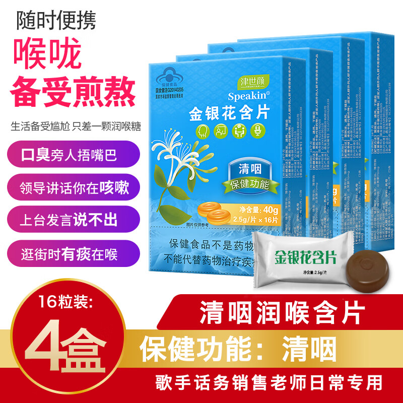 津世颜 金银花 胖大海喉糖歌手话务销售老师专用清咽喉 金银花润喉糖16片x4盒