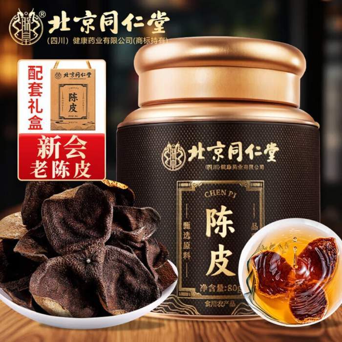 北京同仁堂新会老陈皮十五年正宗广东新会产地陈皮干大红皮15#陈 铁罐老陈皮80g