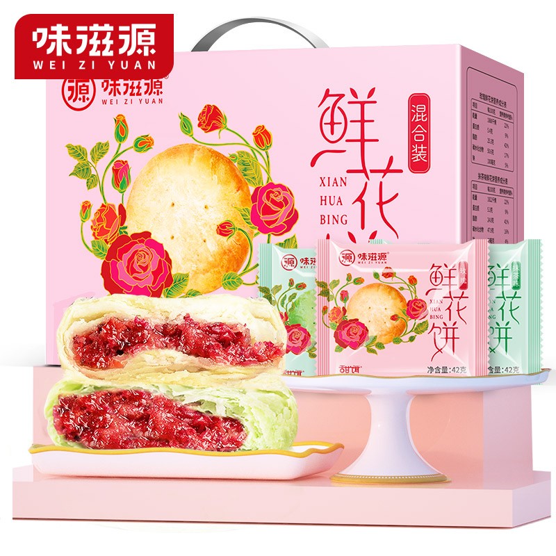 味滋源网红早餐糕点玫瑰鲜花饼,新鲜采摘,蜜汁调配,一口花香一口酥