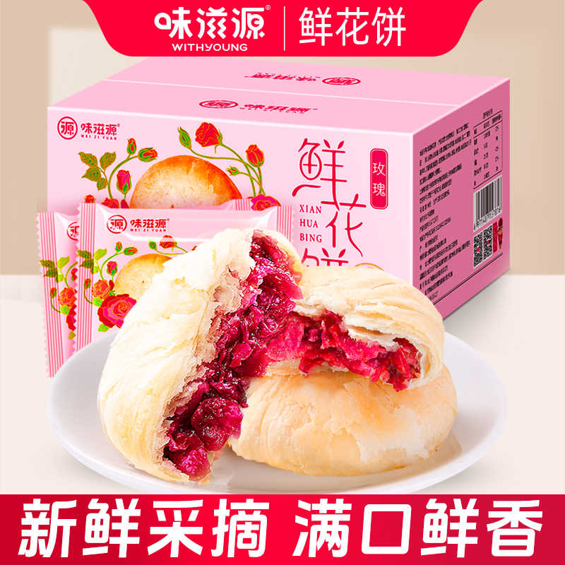 味滋源网红早餐糕点玫瑰鲜花饼,新鲜采摘,蜜汁调配,一口花香一口酥。