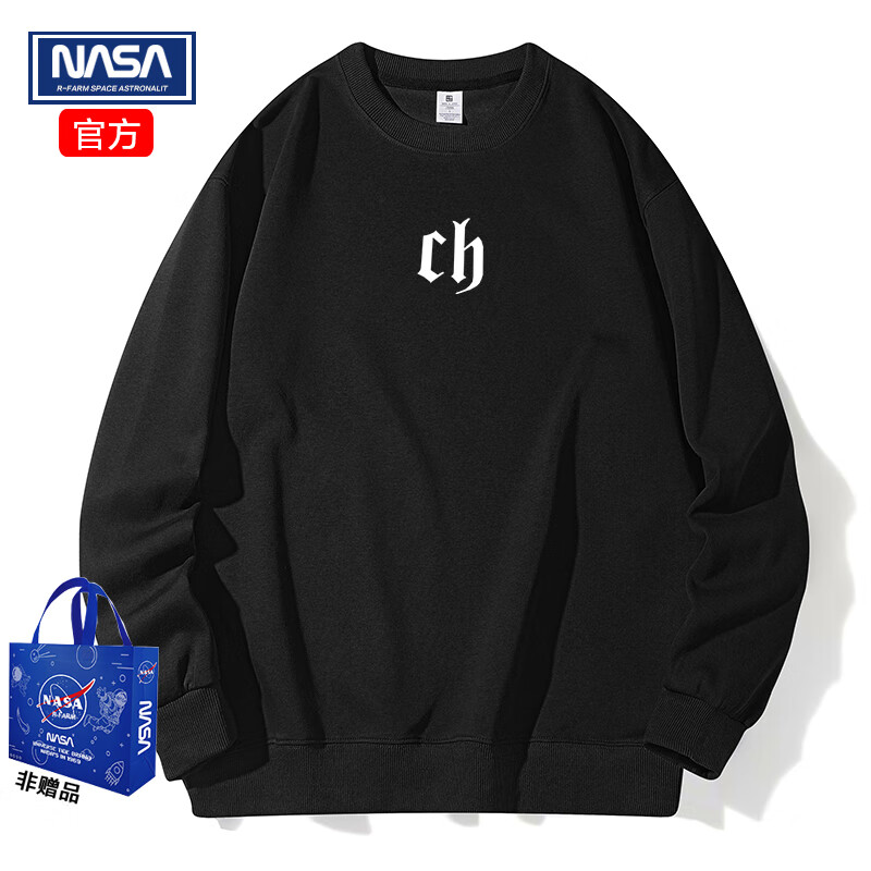 NASAR-FARM圆领卫衣男女同款春秋季新款国潮字母印花宽松情侣装休闲打底衫 HM6004CH-黑色 XL (130-145斤)