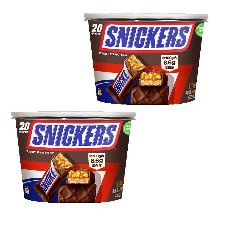 士力架花生夹心巧克力400g*2桶运动补充能量棒休闲办公小零食糖果,爆款直接买!