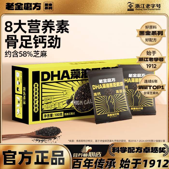 老金磨方【黑金系列】DHA藻油黑芝麻饼干 孕妇儿童高钙酥脆解馋零食糕点 藻油芝麻饼100g