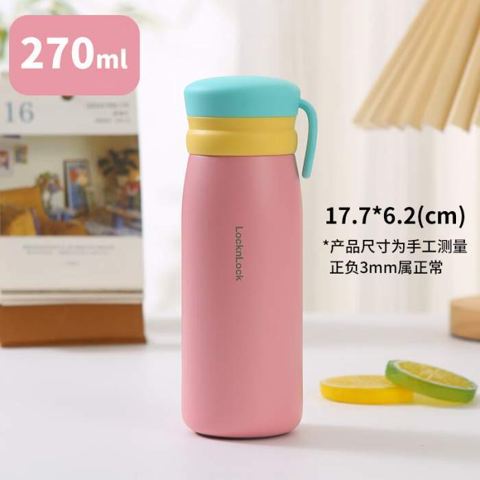 乐扣乐扣(LOCK&LOCK)316保温杯女高颜值学生水杯子便携小巧迷你保温瓶喝水杯 旋盖提绳款粉色270ml