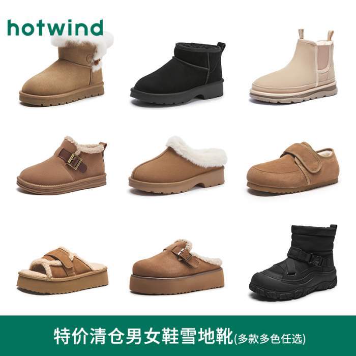 【叠1.5淘金币到手77.5元起】 热风女鞋男鞋雪地靴加绒保暖加厚棉鞋短靴厚底毛毛鞋博肯鞋拖鞋!!!