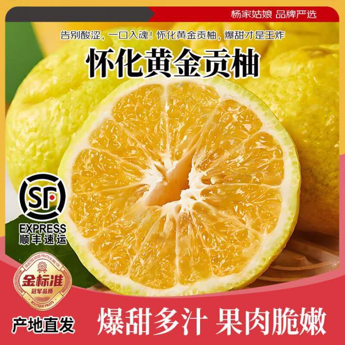 杨家姑娘 湖南怀化黄金贡柚 纯甜新鲜水果春香柚象山青黄金柑时令柚子礼盒 4.5斤 尝鲜小果60-70mm【顺丰/JD】