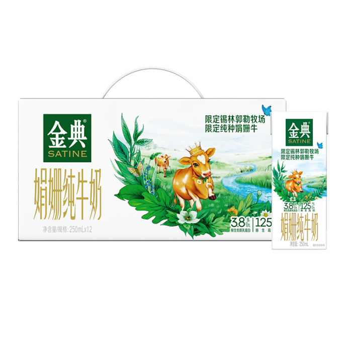 > 金典旗舰店锡林郭勒娟姗纯牛奶双限定12盒营养早餐MS【9月】金典系列高端款,3.8g/ml蛋白,限定牧场限定娟姗奶牛,9月份生产日期,2.4一盒,普通款3.6g蛋白,营养价值高,按照39左右结算拥服