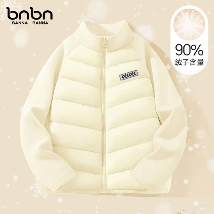 班纳班纳男童羽绒服2025儿童新款保暖童装女秋冬款外套大童羽绒服 【羽绒内胆】eH通方形魔术贴K杏 160