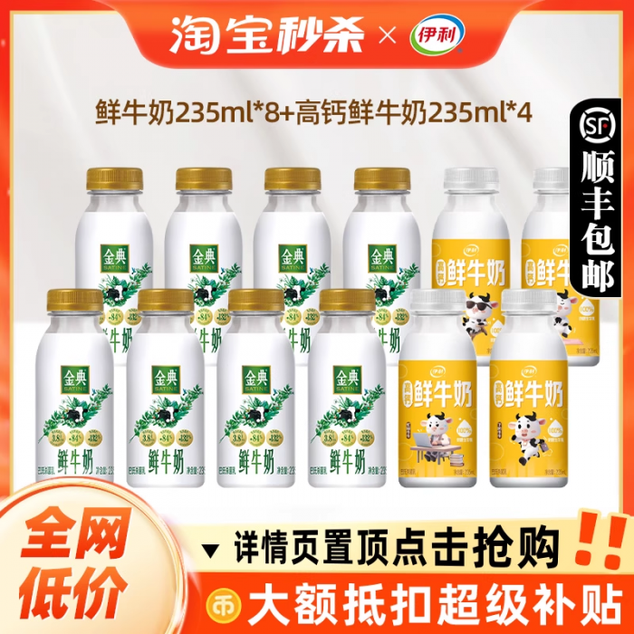 金典鲜奶上新了!新加了高钙鲜牛奶!!顺丰冷链发货!喝到的每一滴都是新鲜牛奶!