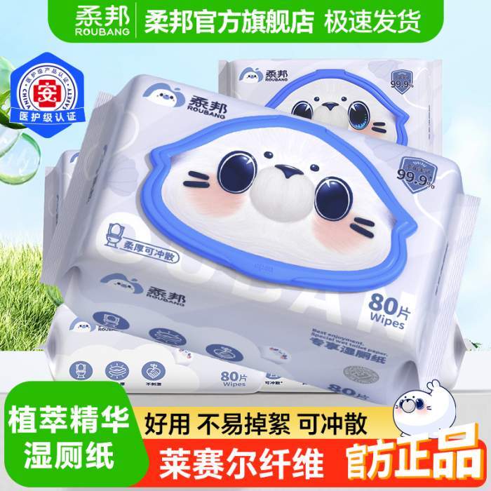 > 柔邦专享湿厕纸男女厕所擦屁股80抽湿厕巾洁厕湿纸巾厕纸湿巾柔邦湿厕纸,男女专用擦屁屁专用洁厕纸,除菌99%,肉眼可见的厚度不怕渗透弄脏手,植绒面层舒服柔软,亲肤舒适好用,快冲~柔邦湿厕纸,呵护私处更贴心,可冲散无纺布,直接丢马桶很方便!