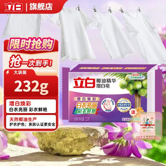 立白洗衣增白皂去渍不发黄洗衣肥皂232g家用 椰油增白皂232g*1块