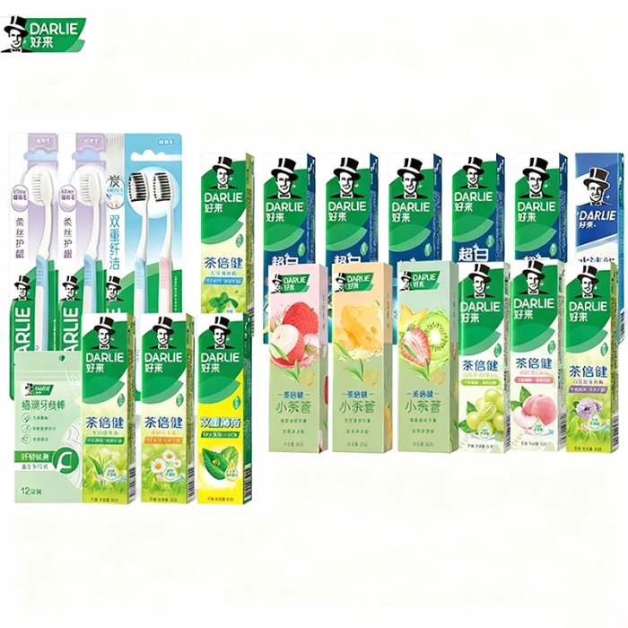 > 【60元任选6支】DARLIE好来原黑人超白茶牙膏成人正品清新口气拍6件原价60.6元-优惠券25元-淘金币2.64元=32.96元/12=2.7元/支。清新口气酷爽滋味,美白去黄,改善多种口腔问题,超值家庭装和家人一起自信笑出来!