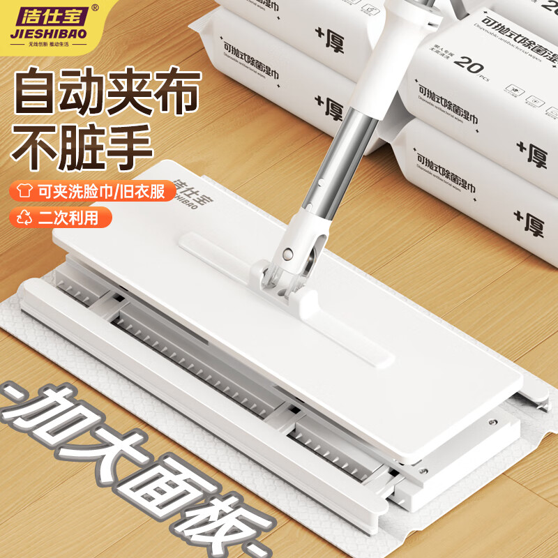 洁仕宝自动夹布拖把除尘纸大号加长一次性拖把 【洗脸巾拖把32cm】单拖把,超赞~