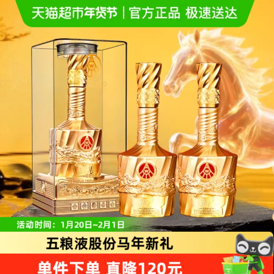 速度先领500元大鹅券 天猫超市•五粮液股份出品新礼品牌金水晶白酒500ml*2瓶 看图!右上角叠金币164亓,88vip到手155.6亓折77.8亓/瓶! 猫超就是快今天买明天到!酒还保真!酒香醇香好喝不上头 赠人五粮液,情深意更浓!马年限定款高端大气!还赠礼袋