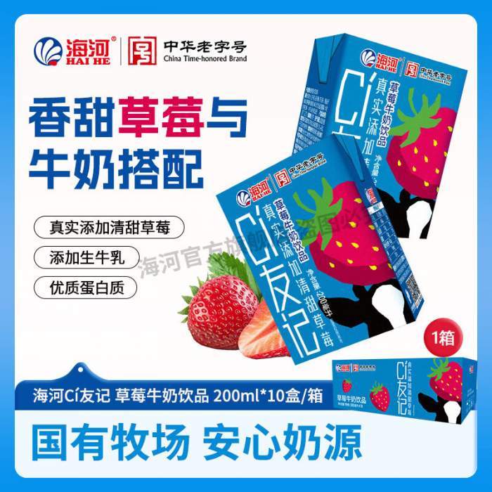 海河CI友记草莓可可牛奶饮品天津海河风味奶含生牛乳早餐伴侣 草莓味200ml*10盒